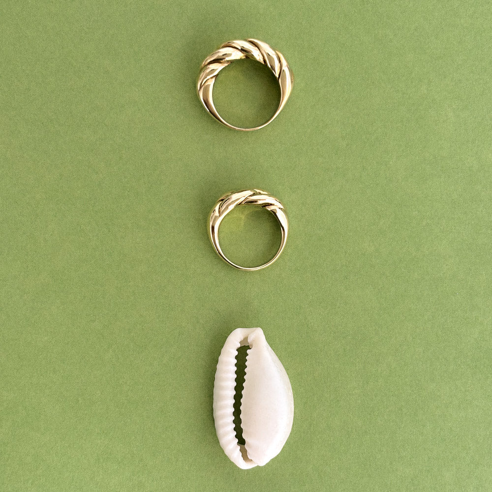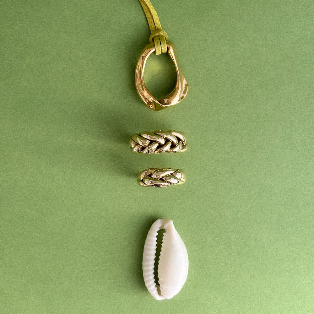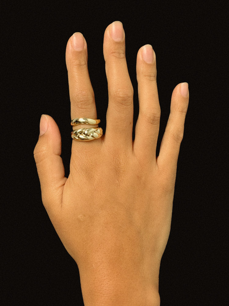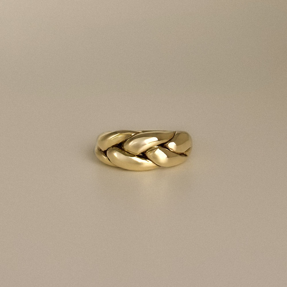 Sculpted in wax and handcrafted in brass, The Solace features a fluid yet tight braided silhouette, a balance of softness and strength.